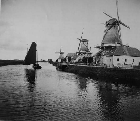 Een bijzondere historische beeldopname uit 1884 met daarop drie molens aan de Harlingertrekweg in Leeuwarden. Een van de molens, De Fortuin, stond aan de basis van stoommeelfabriek Fortuna, aldus Berthus de Jong. Hij plaatste de foto op genoemde Facebookpagina.