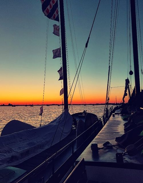 Nanke de Jong voer tijdens het IFKS-gebeuren op het volgschip Poolster mee van het skútsje De Trije Doarpen. Het waren ‘prachtige dagen’, aldus Nanke. Bijgaande foto maakte ze in de morgenstond op het IJsselmeer bij Hindeloopen. Er zijn geen scheepshonden in beeld. Die slaan doorgaans aan als een bemanningslid ze wakker maakt. WD