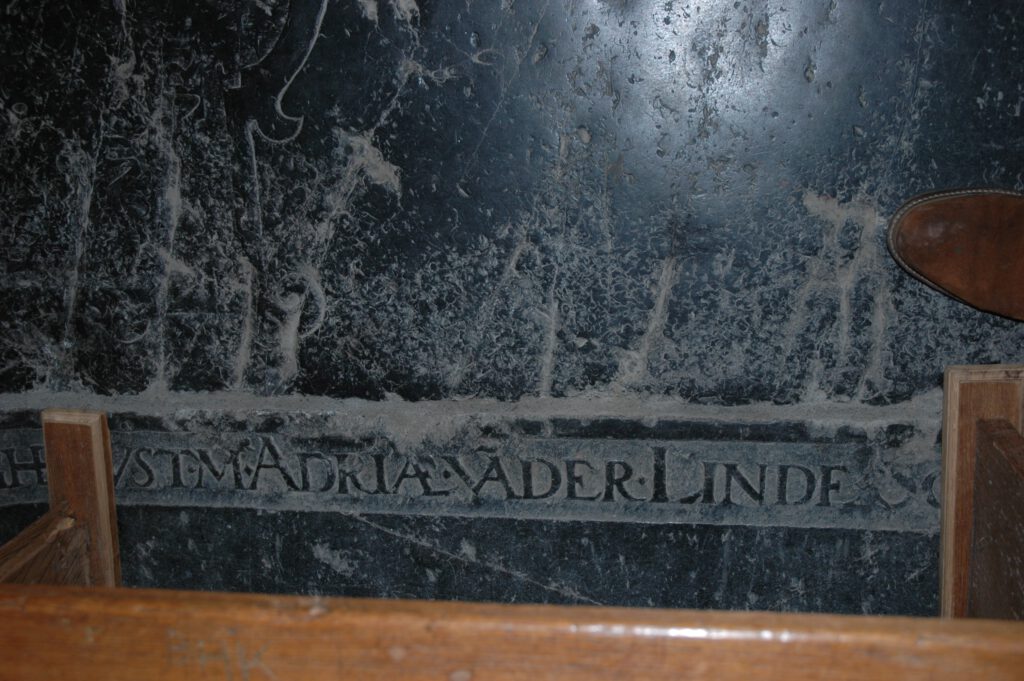 Bolsward heeft de eeuwen door een schat aan cultuur voortgebracht. Heel bijzondere cultuur ook, voor zo’n kleine stad. Schrijvers, dichters, schilders, zilversmeden, noem maar op. Velen heb ik al her en der beschreven, van Gysbert Japix tot Frits van der Meer en van Claes Fransen Baerdt tot JanMurk de Vries, maar vele anderen nog niet. Heel weinig, bijvoorbeeld, is bekend van een schilder die in de Bolswarder Sint Maartenskerk zijn laatste rustplaats vond, Adriaan (Adriaen) van der Linde (plm.1560-1609). Een grafsteen in vak 12, rij 5 met zijn naam is nog aanwezig in de vloer van deze gotische kerk. Heel merkwaardig is dat de gegevens over zijn vrouw, waarvan het opschrift, in een ovaal, op de zerk al grotendeels aanwezig is, niet ingevuld zijn.