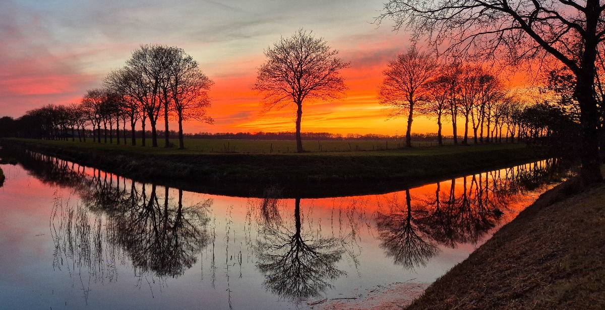 De Drentse fotograaf Alma Wanningen laat in haar beeldopnames geregeld een zekere liefde voor bomen zien. Op bijgaande foto laat ze bomen op kundige en subtiele wijze spiegelen in het water.