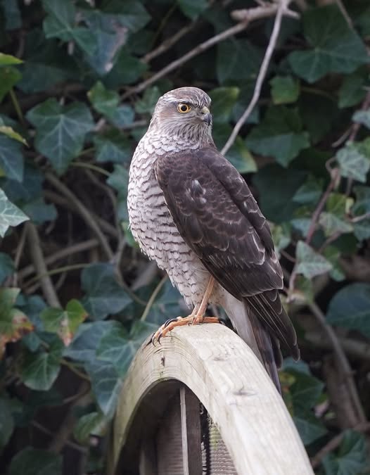 Fotograaf Alma Wanningen slaagde erin een prachtige beeldopname te maken van een sperwer. De roofvogel zat enkele momenten op het hek langs de rand van de tuin.