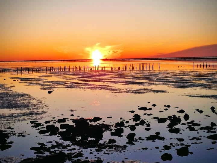 Fotograaf Jannie Pelgrim toont een prachtige beeldopname met stilte aan het Groninger wad en een bijzondere rode lucht, ‘nergens zo rood’, voegt ze eraan toe. WD