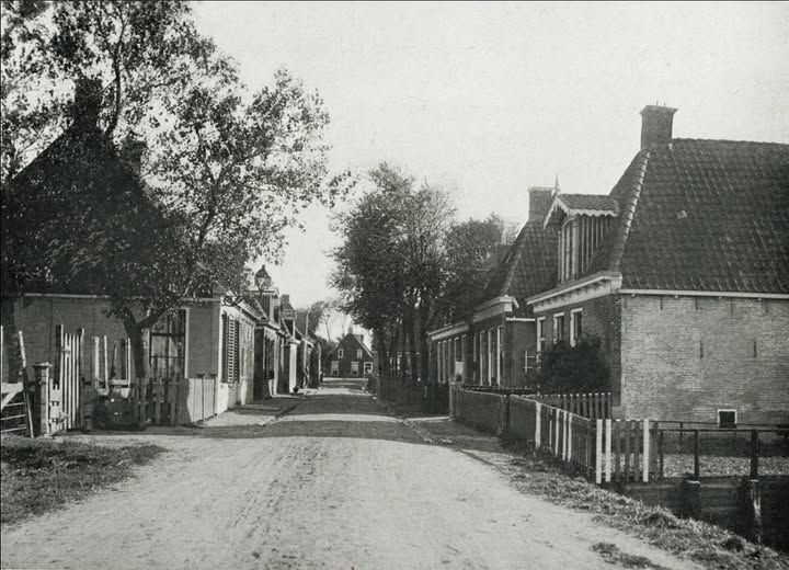Een rustig beeld van eens straat in Witmarsum in het eerste decennium van de vorige eeuw: 1908. WD