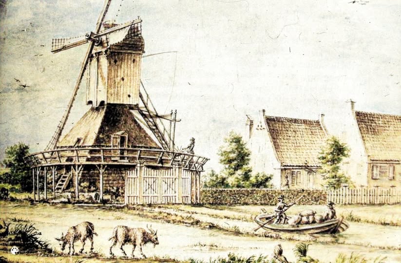 Door Piet Postma Ingekleurde tekening uit ca. 1774 van de stellingmolen van Ieme Johannes bij Zevenhuizen (Franeker). Deze molen, die als pelmolen fungeerde, was gebouwd in 1664 en is na 1779 verdwenen. ‘Een pelmolen was een type molen, waarin vroeger gerst tot gort (en later rijst) gepeld werd, om het kaf van de graankorrel te scheiden.’ (bron: […]