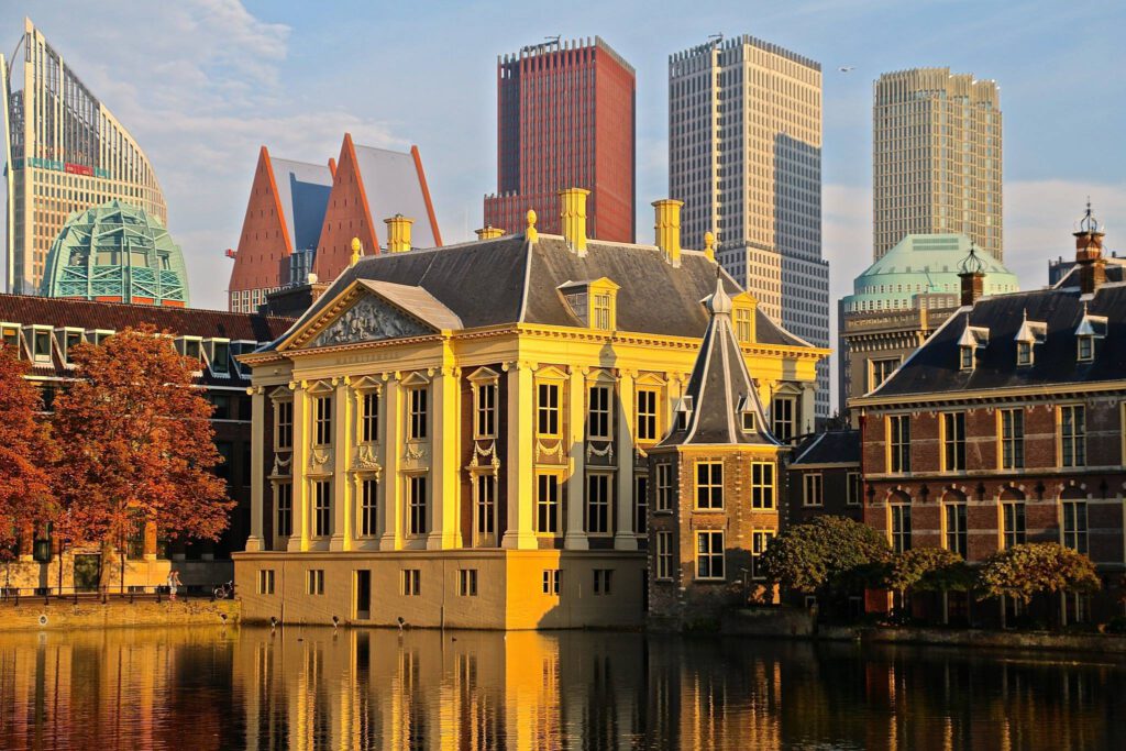 De Hofvijver, het Binnenhof en daarachter enkele ministeries in Den Haag. © Floriske Gerritsma