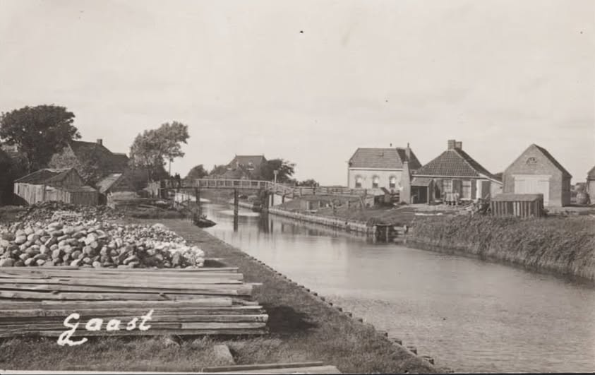 Een authentiek beeld van Gaast met planken en stenen aan de vaart. In de kerk van het dorp hangen enkele kroonluchters, die afkomstig zijn uit de voormalige synagoge van Bolsward, waar een officiële joodse gemeente bestond tussen 1786-1911.