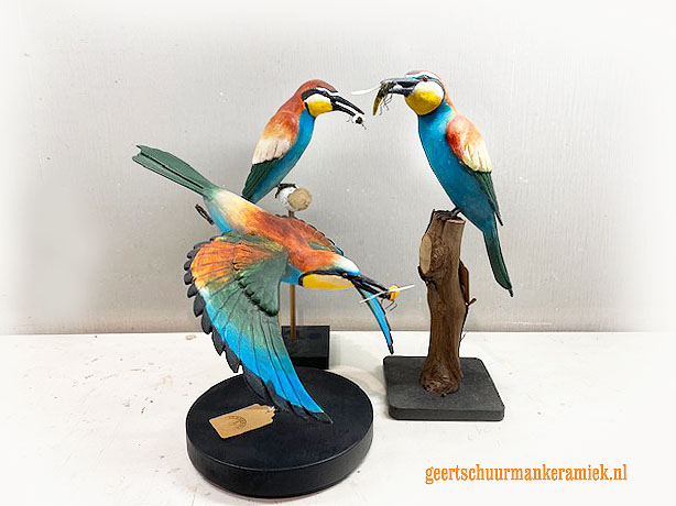 Keramist Geert Schuurman uit Witmarsum maakt bijgaande bijeneters, gekleurd werk van kwaliteit. Nog steeds ben ik gefascineerd door de schoonheid en het gedrag van vogels in het bijzonder. Het geeft mij vleugels en verbeeld ik mij dat ik de wereld met mijn vogel beelden iets mooier maak, aldus Geert Schuurman WD Geraadpleegde bron: https://www.geertschuurmankeramiek.nl/home/over-mij/