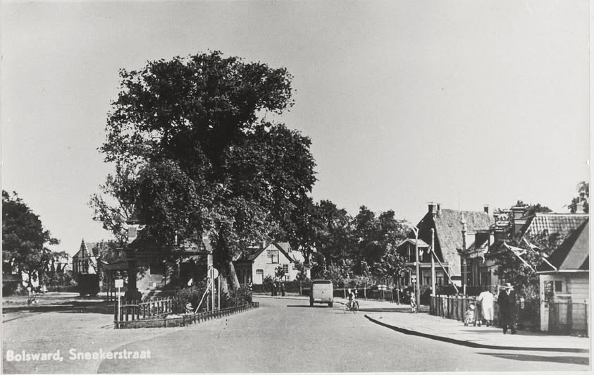Een mooie afbeelding van de Sneekerstraat in Bolsward, hoewel niet geheel scherp, ten tijde van de crisisjaren in de vorige eeuw. WD