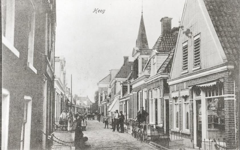 In histoaryske byldopname fan de Harinxmastrjitte yn Heech. Eartiids wiene de húshâldingen grutter en wennen der mear minsken yn dizze haadstrjitte en de stegen dêromhinne.