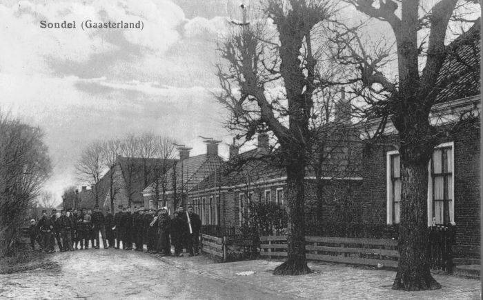 Op deze historische afbeelding die werd gemaakt tijdens de Eerste Wereldoorlog (1914-1918) gaat het vrijwel zeker om Belgische soldaten. De onderste foto toont de Belgen eveneens. Op de toegevoegde link kunt u meer lezen over de komst van soldaten en vluchtelingen in Sondel (Gaasterland).