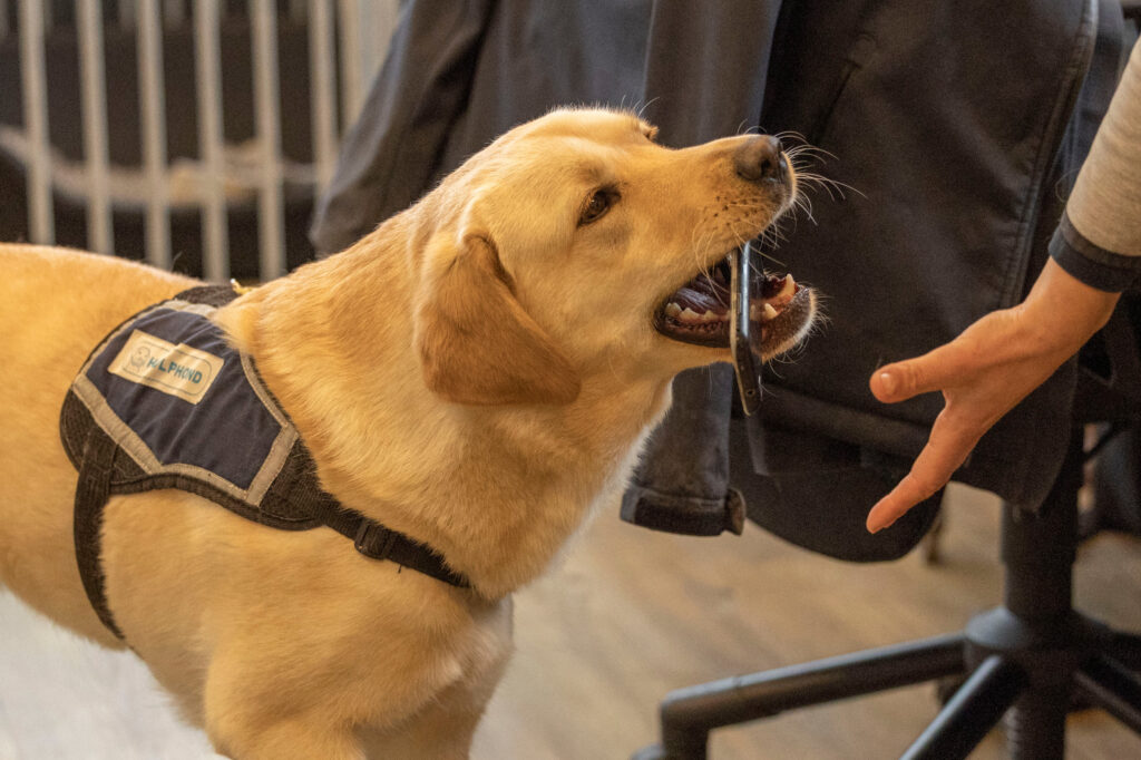 Een PTSS-hulphond zorgt voor afleiding, structuur en beweging. Bij stress vormt de hond een buffer tussen zijn baas en andere mensen en maakt hij hem wakker bij de eerste signalen van nachtmerries om herbelevingen te stoppen.