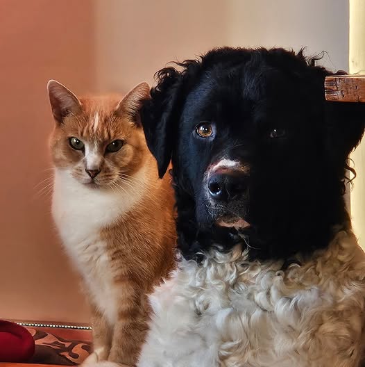 Fotograaf Femmy Boon uit Bolsward presenteert een rode kat en hond, een kruising Stabyhoun-Wetterhoun. Een geslaagd fotografisch dierenportret.