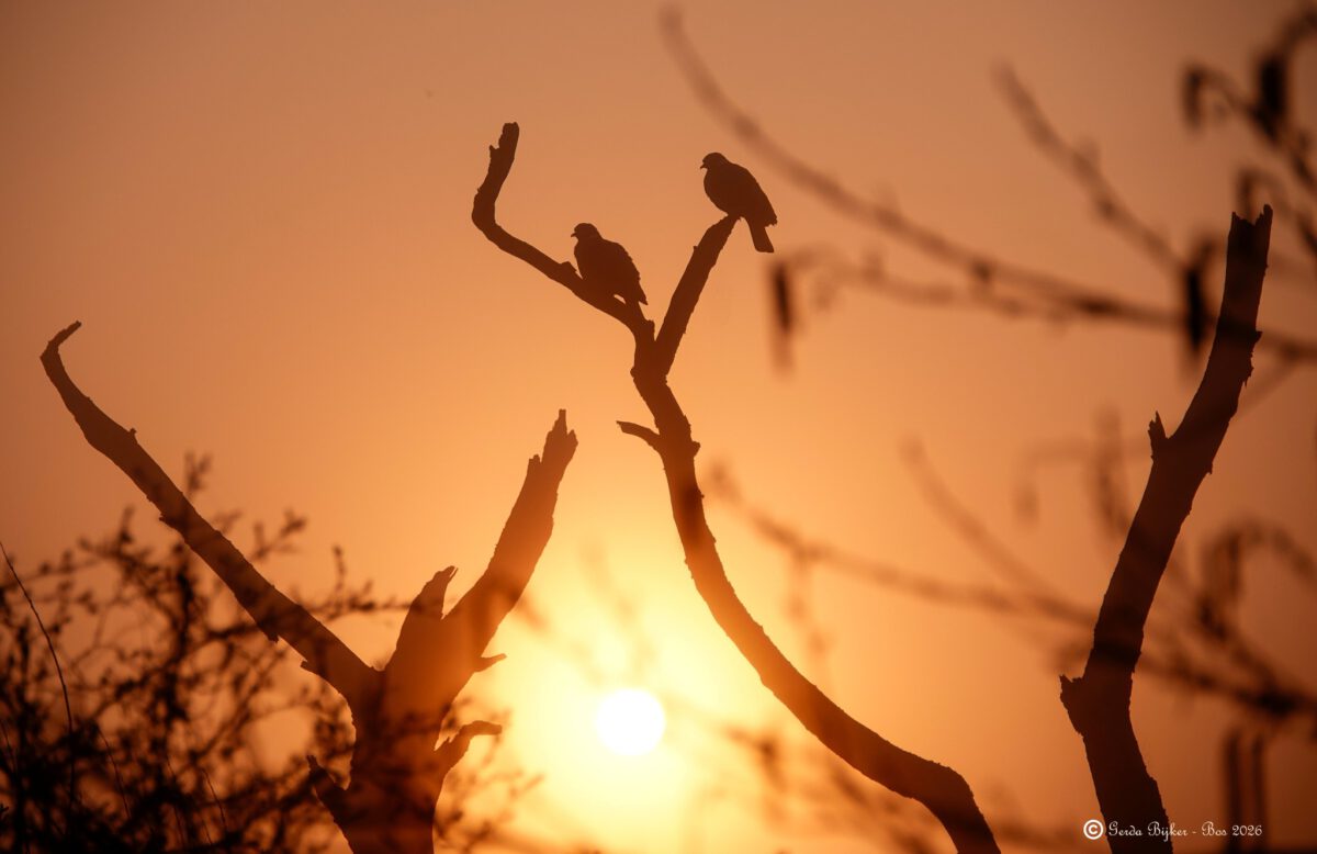 Fotograaf Gerda Bijker toont een van de eerste voorjaarsochtenden van 2026. Daarop is ook van toepassing: de morgenstond heeft goud in de mond. En natuurlijk vindt het duivenpaar er eveneens iets van.