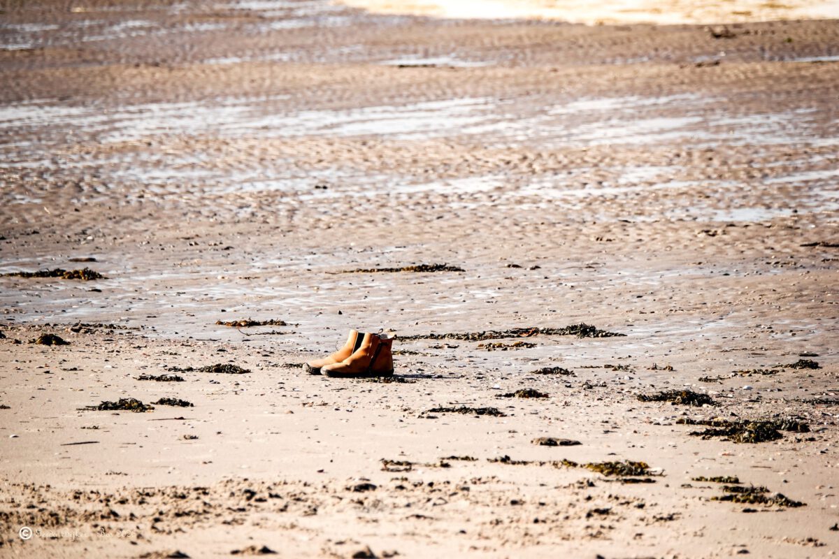 Fotograaf Gerda Bijker presenteert een geheimzinnige situatie. Waar is de strandloper? Dat is iemand die ze zonet nog zag wandelen over het strand. Is de strandloper de duinen ingegaan om een tukkie te doen? Of zwemt hij een beetje bloot in het nog tamelijk koude zeewater en worstelt-ie zich door de golven heen?