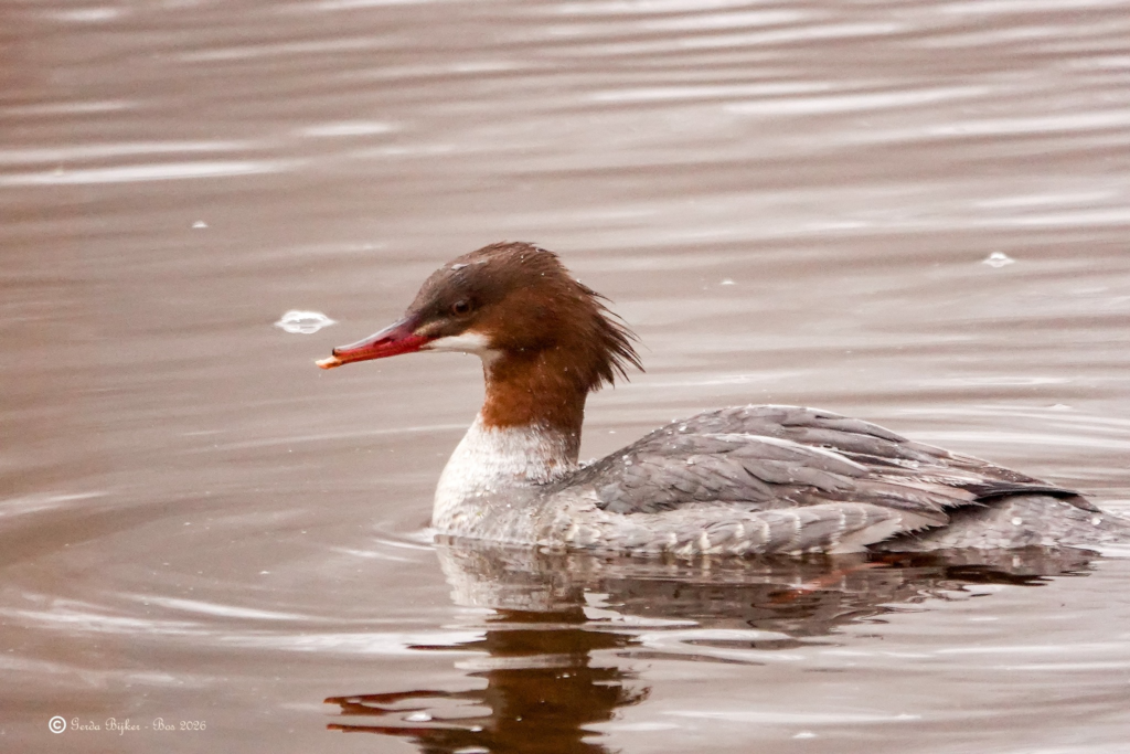 Vrouwtjeszaagbek met beschadigde snavel. © Gerda Bijker