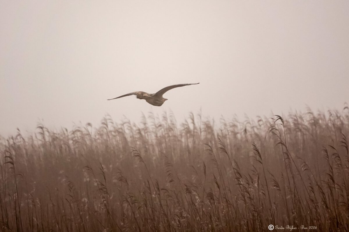 Fotograaf Gerda Bijker presenteert een roerdomp in de mist. De schuwe roerdomp is een tamelijk forse reigersoort. Met een beige bruin getint verenkleed vindt deze vogel goede beschutting in een vooral moerasachtig leefgebied.