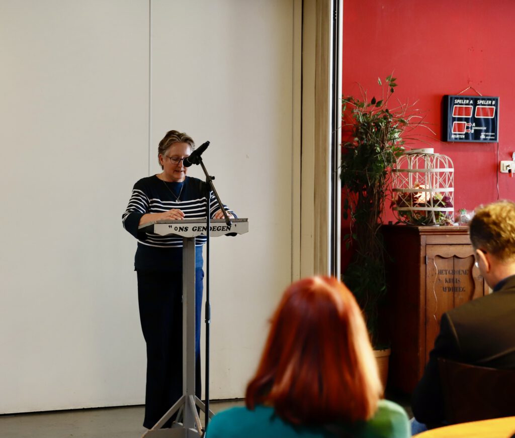 Froukje Hofstede presenteert geselecteerde poëzie. © Floriske Gerritsma
