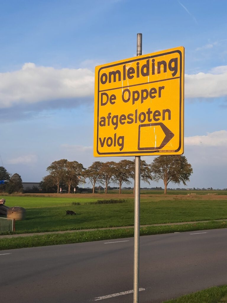 Even verderop staat ter hoogte van transportbedrijf Veenstra/Fritom een geel verkeersbord. Op het bord staat onder meer: De Opper afgesloten. Een automobilist van buiten de regio Súdwest kan niet direct weten waar De Opper is. Er wordt zodoende geen rekening gehouden met alle verkeersdeelnemers. Dit strookt niet met de portefeuille Gastvrijheidseconomie, waar wethouder Rietman verantwoording voor draagt.
