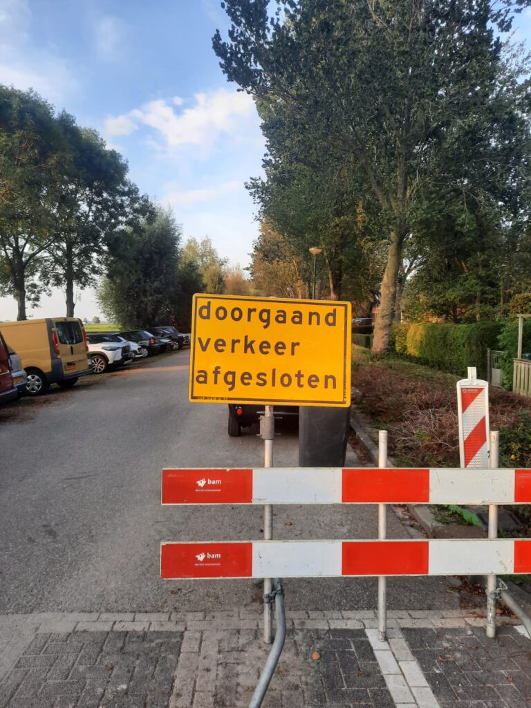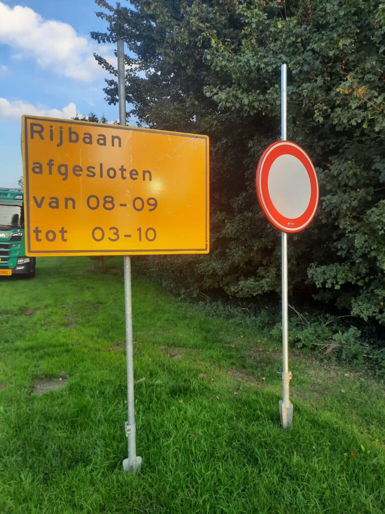 Een klein stukje verder om de hoek, bijna aan het einde van de Skeender, staat onderstaand bord met het tekstfragment Rijbaan afgesloten.