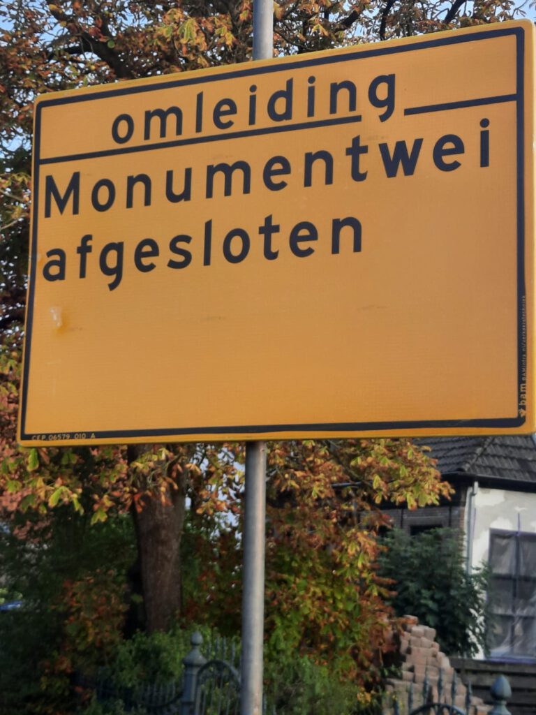In Nijland staat ook aangegeven dat de Monumentenwei is afgesloten. En hier hetzelfde euvel als bij Heeg: hoe kan de verkeersdeelnemer van buiten de regio Súdwest weten waar de Monumentenwei is? Waarom staat er niet op dat de route Folsgare richting Sneek gestremd is?