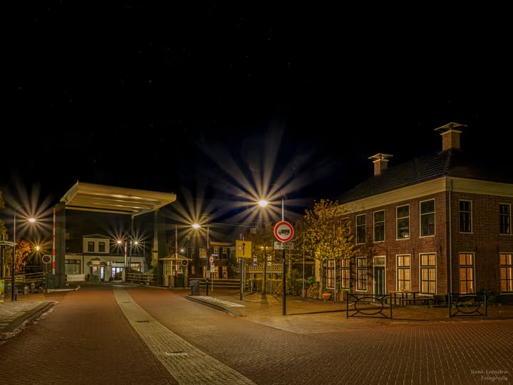 Fotograaf Henk Feenstra toont een schitterend beeld van hartje Onderdendam als de avond is gevallen.