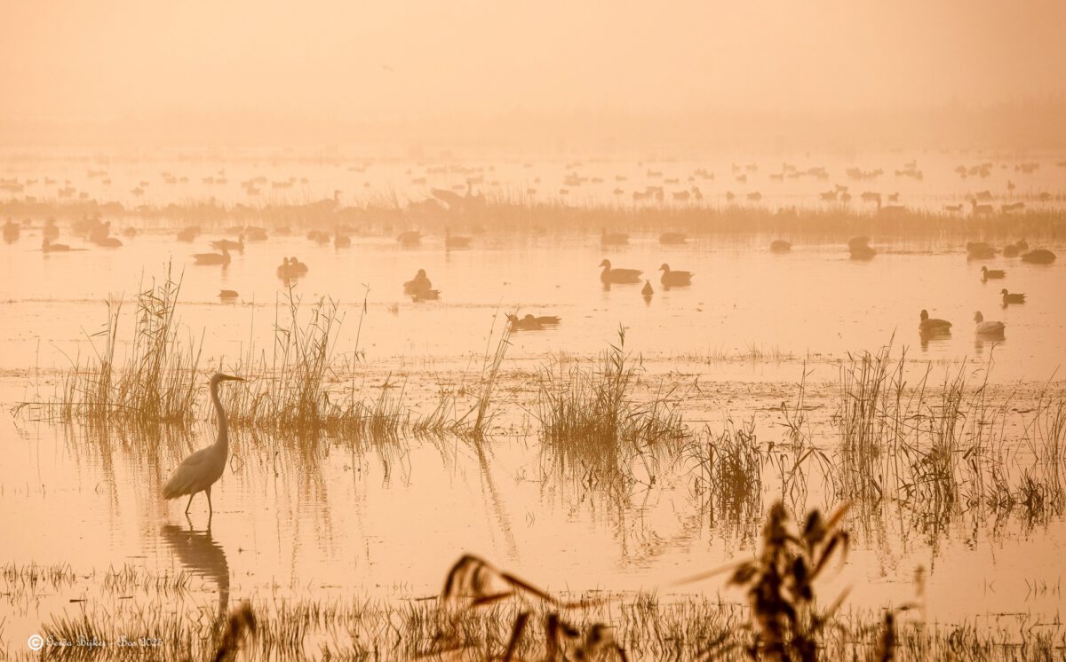 Fotograaf Gerda Bijker-Bos presintearret stilte, mist en fûgels yn it bûtlân oan de Grienedyk op in novimbermoarn.