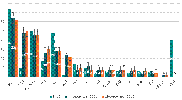 Figuur: Zetelpeiling Ipsos I&O 29 september 2025