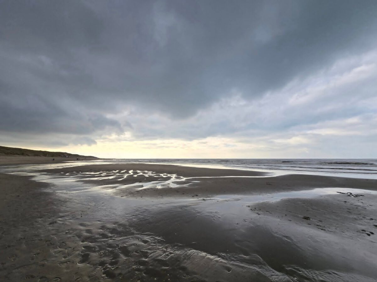 Het subtiele tegenlicht creëert een zilverachtige gloed die doet denken aan de traditie van de Haagse School, waarin het Hollandse licht niet nadrukkelijk aanwezig is, maar juist in zijn bescheidenheid spreekt. Kleine figuren in de verte — nauwelijks meer dan stippen — brengen schaal en menselijkheid in het beeld. Ze herinneren de toeschouwer eraan dat de mens slechts te gast is in dit grote, ademende landschap. Zo ontstaat een spanningsveld tussen aanwezigheid en afwezigheid, tussen stilte en beweging. Wat De Jong hier vangt, is niet zozeer een moment, maar een gevoel van ruimte. De foto lijkt de vraag te stellen wat er overblijft wanneer alle ruis wegvalt — wanneer alleen nog licht, lucht en zee met elkaar in gesprek zijn. Een klein beeld, groot in stilte.