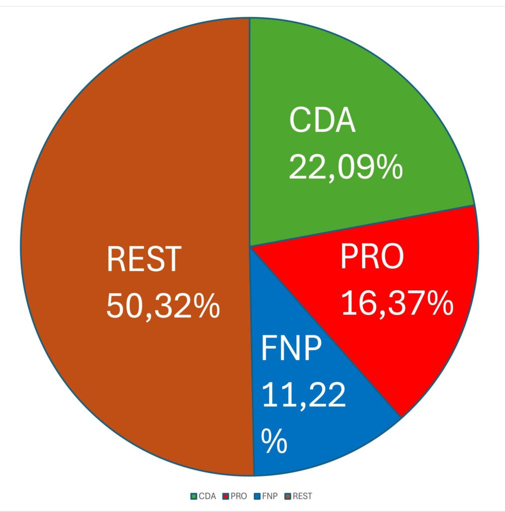 Nu de uitkomst van de gemeenteraadsverkiezingen vaststaat zal het waarschijnlijk betekenen dat de huidige coalitie van CDA, PRO (v/h Groen-Links-PvdA) en FNP gewoon zal blijven bestaan. Leuk, hoor, die voorstellen voor een raadsbreedakkoord van onder meer BBB, maar dat is in 2022 al een keer door Nieuw Sociaal geprobeerd en geloof maar niet dat partijen als CDA, PRO en FNP hun macht prijs zullen geven. Met wederom 20 zetels (nu CDA 9, PRO 7 en FNP 4) kunnen ze gewoon door.