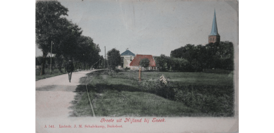 Beide jongemannen verlaten dan de stad via de Snekerpoort en lopen langs een slecht begaanbaar en kronkelig pad (de ‘kluitkleiweg’) via Nieuwland (Nijland) naar Sneek. Rond 1844 werd deze hobbelige en met paard en wagen of koets zeer slecht te berijden weg vervangen door een z.g. Macadamweg; Mac Adam, genoemd naar de Schotse ingenieur John Loudon McAdam. Bij deze grotendeels verharde weg werd een techniek gebruikt met o.a. gebroken steentjes. Daarmee werd de verbinding tussen Sneek en Bolsward flink verbeterd.
