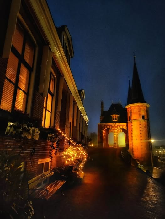 Fotograaf Nanke de Jong maakt tijdens een wandelrondje door Sneek een fraai beeldopname van de Waterpoortsgracht en de Waterpoort.