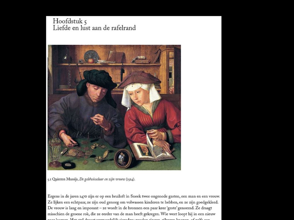 “Ergens in de jaren 1470 zijn er op een bruiloft in Sneek twee ongenode gasten, een man en een vrouw”, zo begint Janna Coomans hoofdstuk 5 ‘Liefde en lust aan de rafelrand’. Het is misschien wel het ‘mooiste’ en smeuïgste verhaal uit het boek. Hoofdpersoon is de in Duitsland en de Nederlanden rondtrekkende goudsmid Henrik Noremeysz Tekelenburg. De vrouw in het verhaal is Mette, de vrouw van een molenaar uit Deventer. Henrik was een praatjesmaker en oplichter die blijkbaar gemakkelijk vrouwen om zijn vinger wond.
