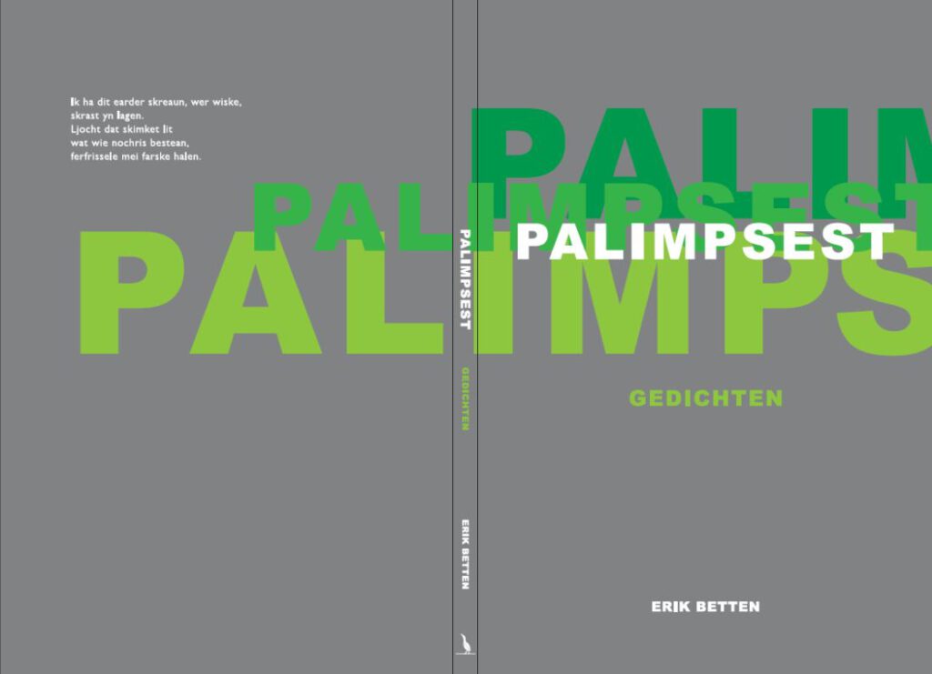 Een van de mooiste omslagen van Utjouwerij DeRyp vind ik het omslag van de debuutbundel van Erik Betten, Palimpsest uit 2021. Een ‘palimpsest’ was in de oudheid een stukje perkament waar een eerdere tekst vanaf geschraapt is, zodat er een nieuwe tekst op geschreven kon worden. Het titelgedicht begint zo: “Ik ha dit earder skreaun, wer wiske, / skrast yn lagen. / Ljocht dat skimket lit / wat wie nochris bestean, / ferfrissele mei farske halen.”