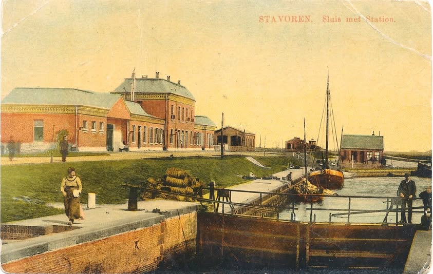 Een prachtig kaart, en vrijwel zeker ingekleurd, van de sluis en het station in Stavoren. Het betreft een mooie herinnering uit vroegere tijden.