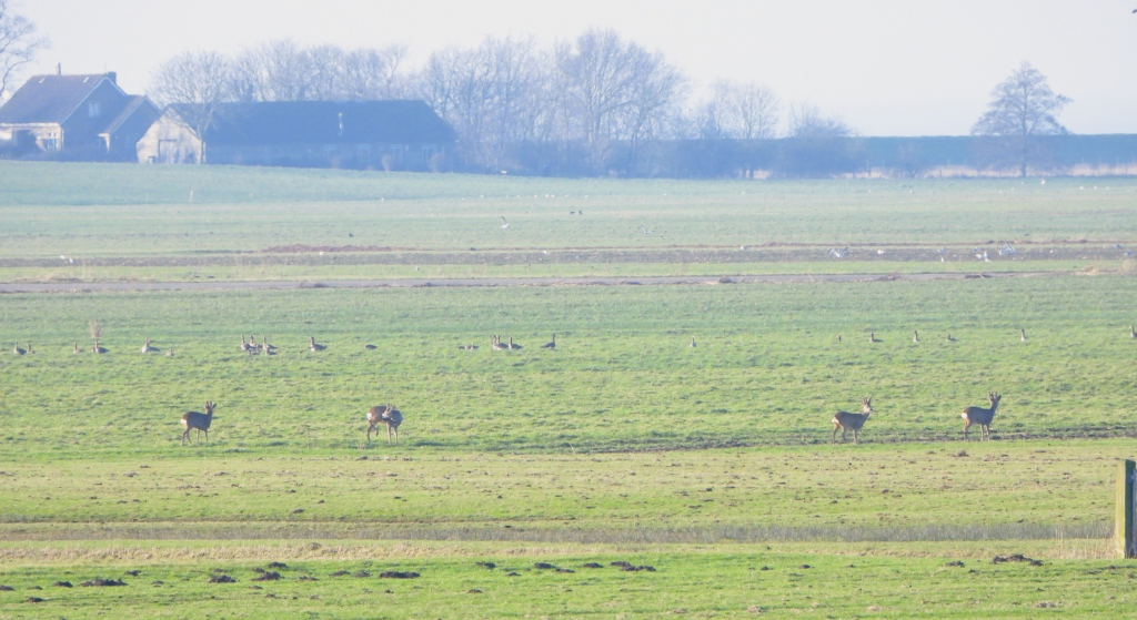 Reeën in de polder bij de Mokkebank. © Wietze de Vries