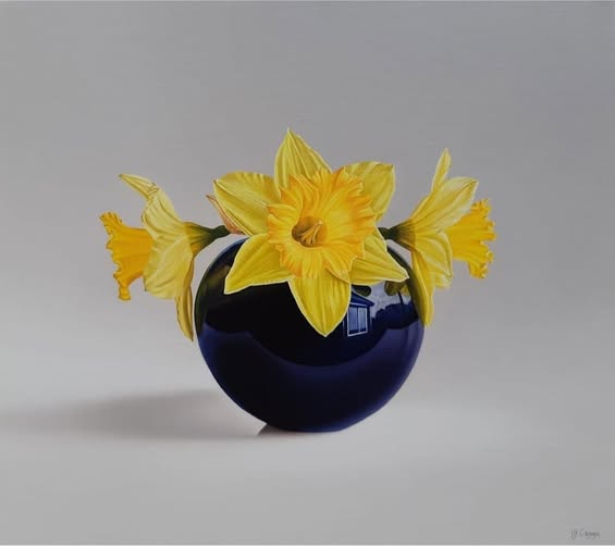 Kunstschilder Yt Osinga uit Oudemirdum presenteert: ‘Narcissen’, een schilderij van olieverf op linnen met afmetingen van 30 cm x 33 cm.